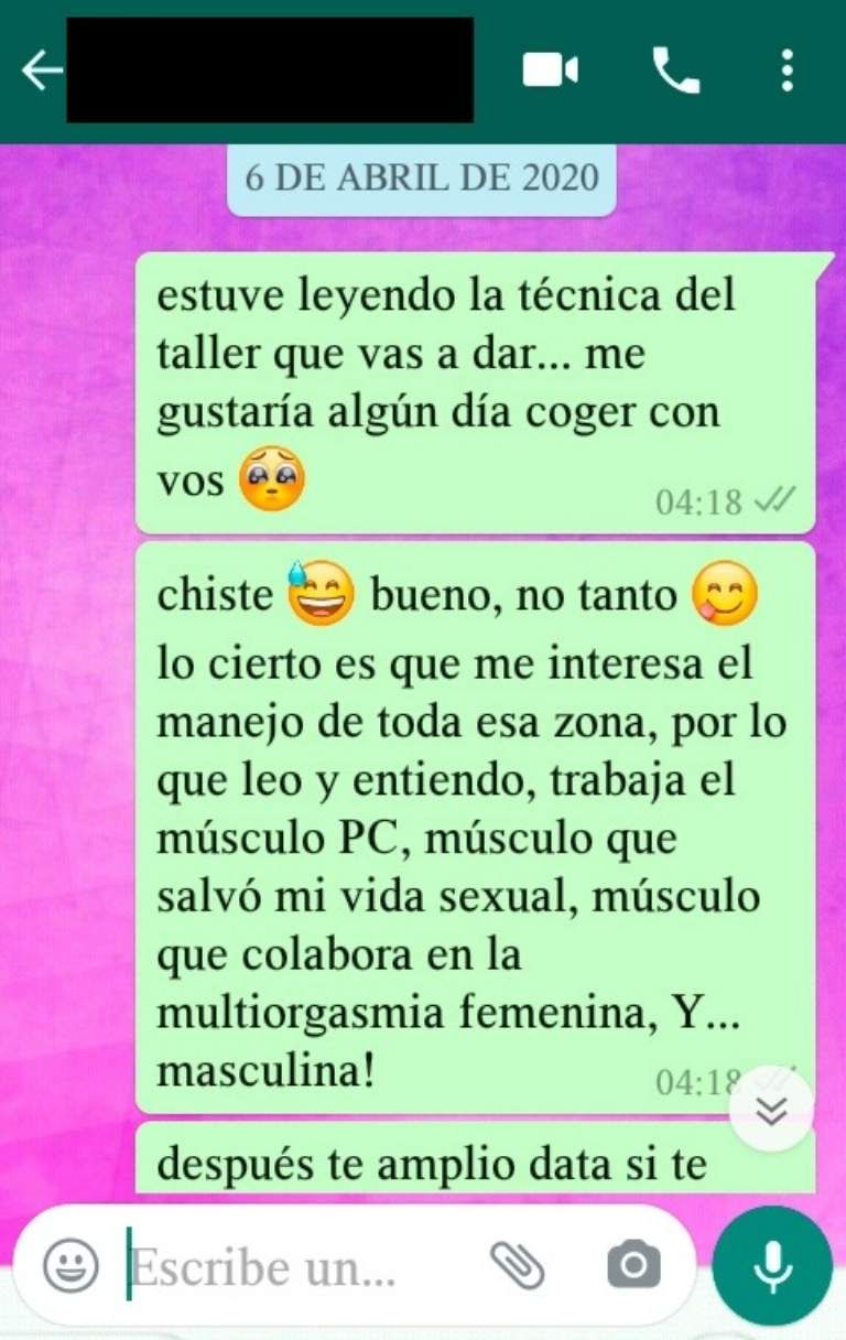 Lo que denuncian las colegas del sujeto, es que las palabras que emplea son en muchas ocasiones insinuaciones para mantener relaciones sexuales y otro tipo de maniobras que se muestran a continuación. Se censura el número de la mujer que recibió los mensajes de manera reiterativa en distintos días de este mes.