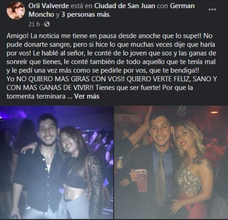 Moncho, está luchando hora a hora por su vida y cuenta con el apoyo de muchos conocidos que lo conocen y el cual, todos coinciden en que es una gran persona. En estos días se pidió el apoyo de todos porque necesitaba sangre y la ayuda llegó sin problemas, explicó la madre.