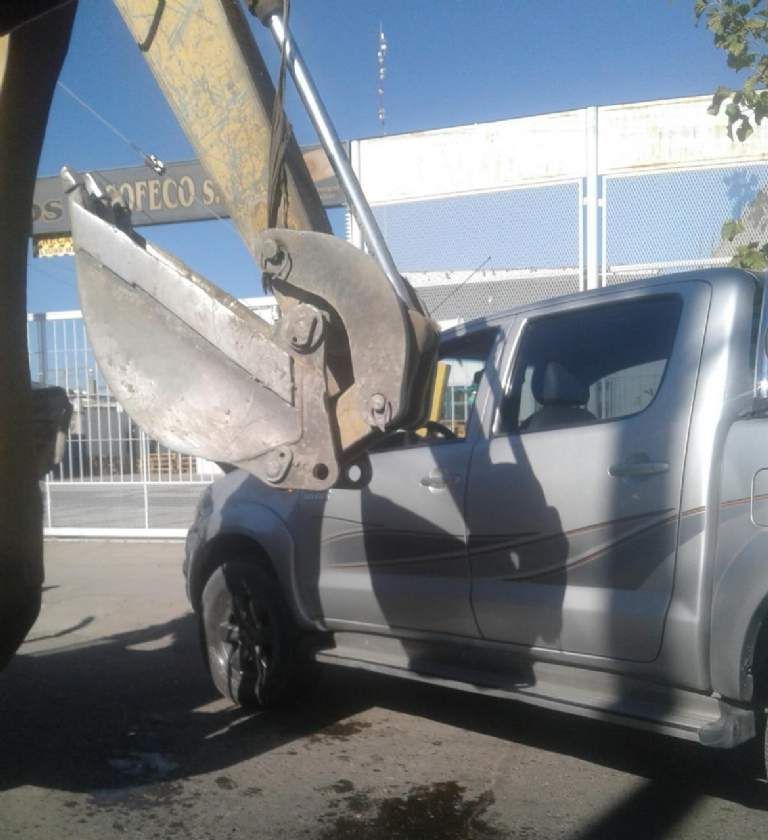 Durante la mañana de este jueves se produjo un coalición entre una camioneta marca Hilux yuna retroexcavadora que realizaba trabajos en calles San Lorenzo antes de Colón en Santa Lucía. En el lugar funciona la empresa de plásticos Cofeco.