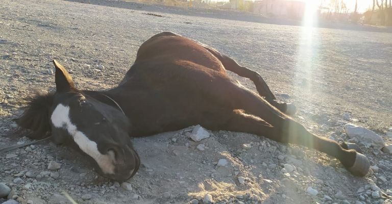 Temprano este viernes, con los primeros rayos del sol, la Policía recibió un llamado anónimo por el cual la alertaban de un caballo tirado, vivo, en la intersección de Ruta 40 y Calle 10, por lo que se acercó un móvil de la Comisaría Séptima al lugar. Allí se encontró con un triste cuadro: el animal, con su pata trasera quebrada y ensangrentada, pero aún con vida y asustado. Por eso, los uniformados apenas llegaron lo ataron a un poste de una señal de tránsito que estaba en el lugar, con la idea de que no salga despavorido, dada la cercanía con la transitada ruta. De todos modos, el caballo poco podía moverse, y se notaba su sufrimiento en la fría mañana, con la fractura expuesta y rodeado de extraños.