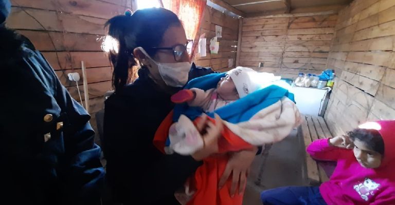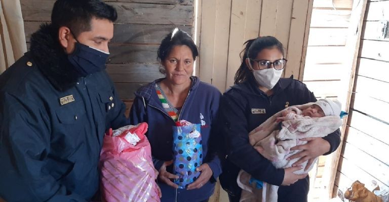 Tras protagonizar minutos desesperantes, en el interior de un precario ranchito situado en La Línea y Punta del Monte, cuando la pequeña se ahogó con leche, la madre que temió perder a su hijita los recibió y agradeció el gesto de los uniformados Roxana Díaz, Martín Videla y el subcomisario Nelson Otarola, que compraron ropita para la bebé y algunos víveres para su mamá y sus tres hermanitos.