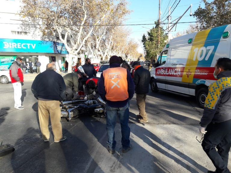 Pasadas las 9 horas de este martes en el microcentro sanjuanino, se registró un fuerte choque entre una motocicleta y una camioneta. El siniestro ocurrió en una esquina con semáforos, precisamente en Avenida Córdoba y General Acha.