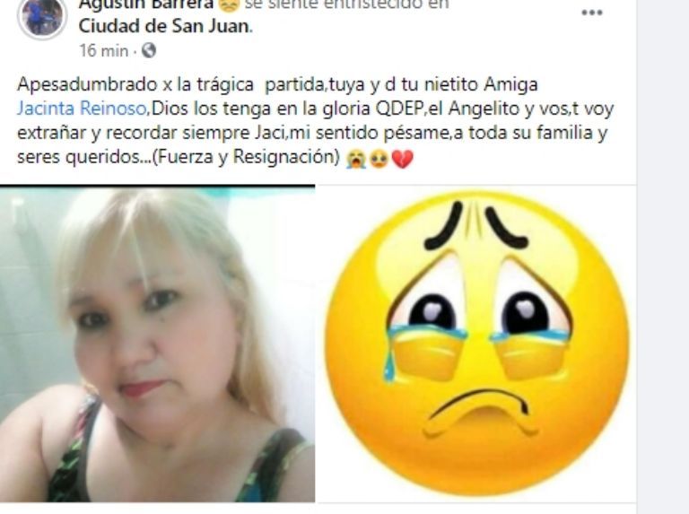 La muerte de Jacinta Reinoso (55) y su pequeño nieto de cuatro años conmovió a todos los sanjuaninos. Es que la mujer y el niño perdieron la vida luego de ser arrastrados por la corriente cuando se refrescaban en un canal de Albardón.