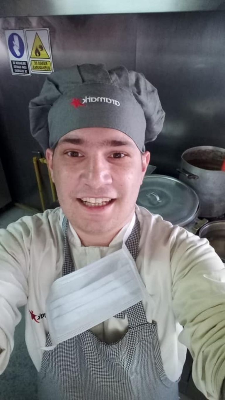 Bucci en su trabajo como asistente de cocina