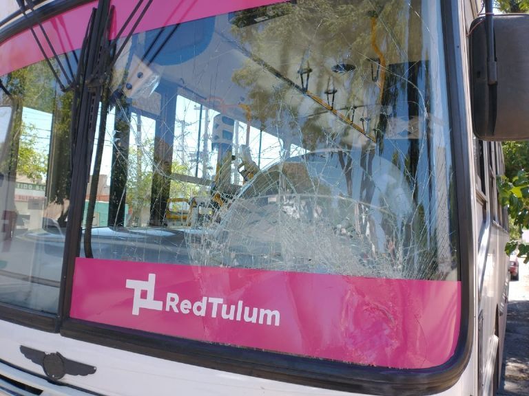 Todo el frente del colectivo presentó golpes.