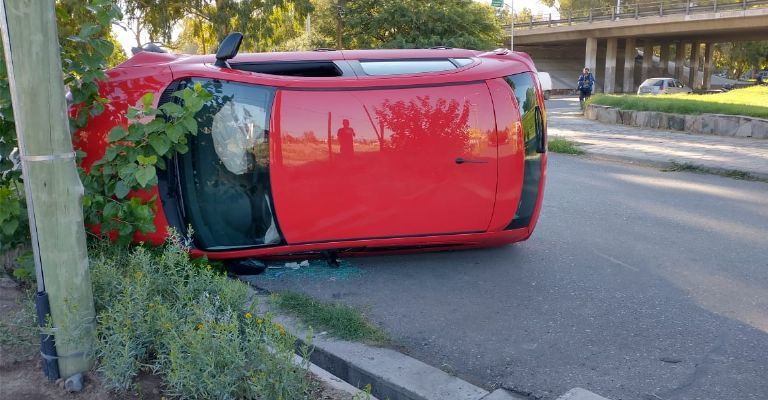 Durante las primeras horas de esta mañana se produjo un siniestro vial entre un auto y una moto en una zona muy transitada de Capital, que derivó en el vuelco del rodado de mayor porte. El hecho se dio en calle Catamarca y lateral norte de circunvalación, cuando una moto impactó en la rueda de atrás del auto Volkswagen Gol Trend. El impacto de la airbag en la cara la deja sin visión a la automovilista, trata de estabilizar el auto y se produce el vuelco.