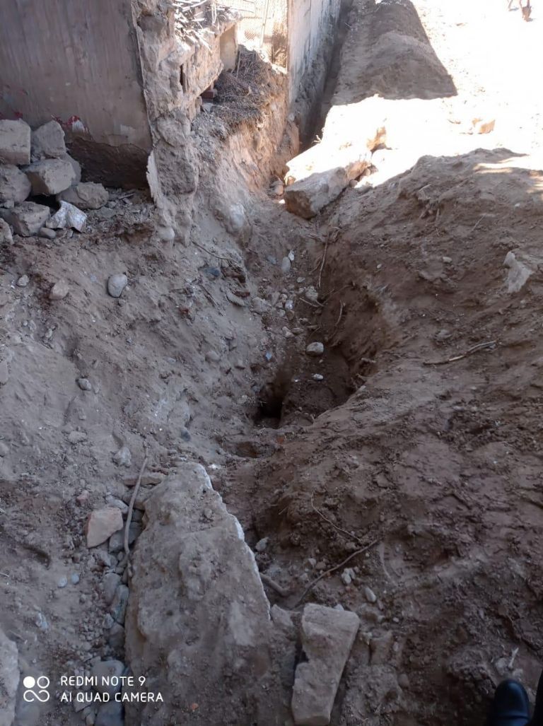 Luna, de 56 años, había sido contratado por Morales para que levantara una pared divisoria de 4 metros de alto, por 36 de largo, al lado de otra vieja pared de adobe. El obrero junto a otros dos albañiles comenzaron por lo primero, los cimientos. Fue así que empezaron a abrir una zanja de 1 metros profundidad por 60 centímetros de ancho y de 40 metros de largo.
