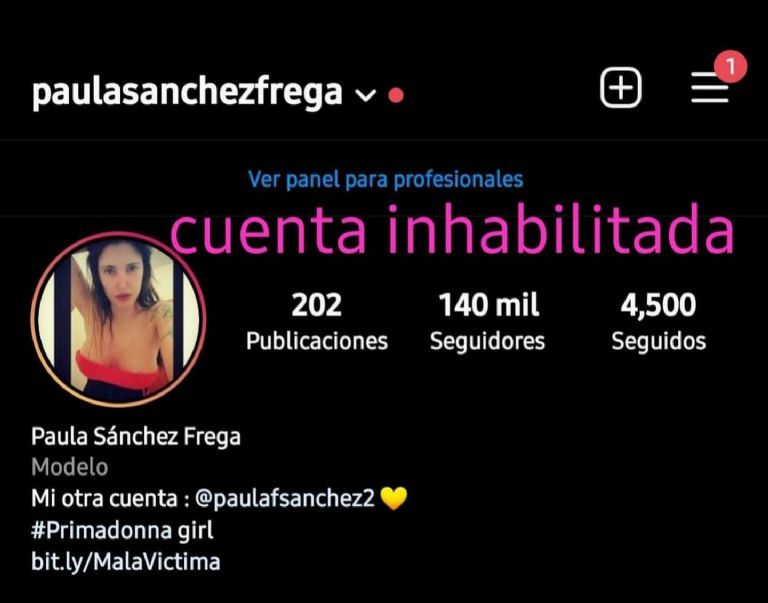 “La cuenta de Instagram la tengo desde 2016 y nunca me pasó. Yo quise entrar y el sistema me dice que la cuenta está inhabilitada. Los que no se dan cuenta quienes denunciaron mi cuenta de instagram es que yo con la cuenta trabajo, tenía trabajos pendientes, es mi herramienta de laburo. Hacía promociones de ropa, de lencería, todo lo que me criticaron y juzgaron por mis fotos que sinceramente no me interesa”, afirmó Paula.