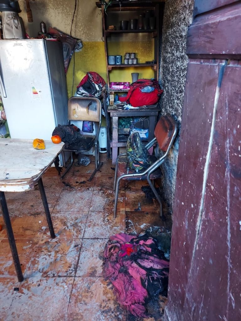 Se conocieron imágenes de la casa de Rawson, donde la noche del lunes se produjo el incendio y explosión de un bidón de combustible que dejó gravemente herido a un joven de 24 años. Fueron tantas las quemaduras en el cuerpo de ese muchacho, que ahora lucha por su vida.