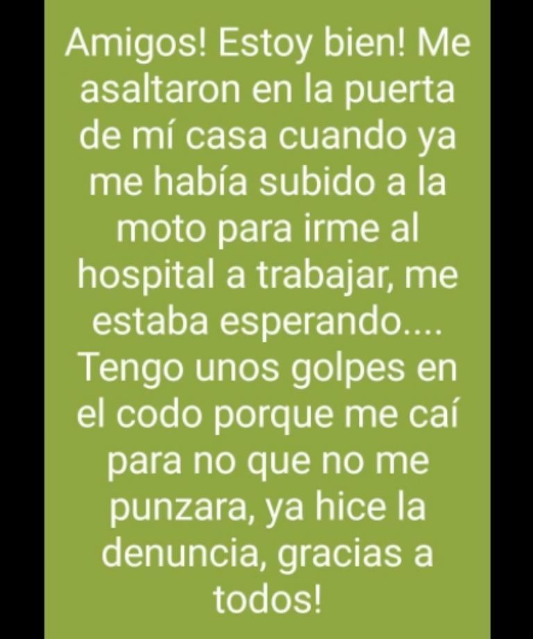 SUSCRIBITEUn enfermero del Hospital Rawson fue víctima de un violento robo este martes. Y él mismo contó lo que ocurrió en su cuenta de Facebook, donde además subió imágenes de la costosa moto que el malviviente se llevó.