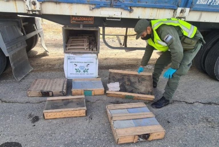 En un operativo realizado por Gendarmería Nacional en el Paraje Vallecito, un hombre quedó detenido por trasladar en una Toyota Hilux más de 50 aves autóctonas.