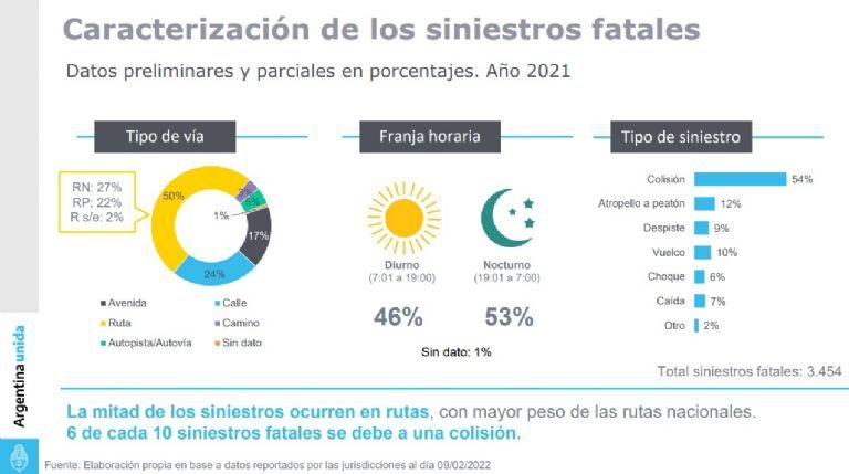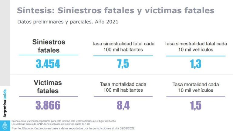 Este último informe oficial que brinda datos parciales y preliminares contempla siniestros viales ocurridos entre el 31 de enero de 2021 y el 9 de febrero de 2022. En el caso local, las estadísticas fueron suministradas a la entidad nacional por la Policía Provincial y el Observatorio de Seguridad Vial provincial.