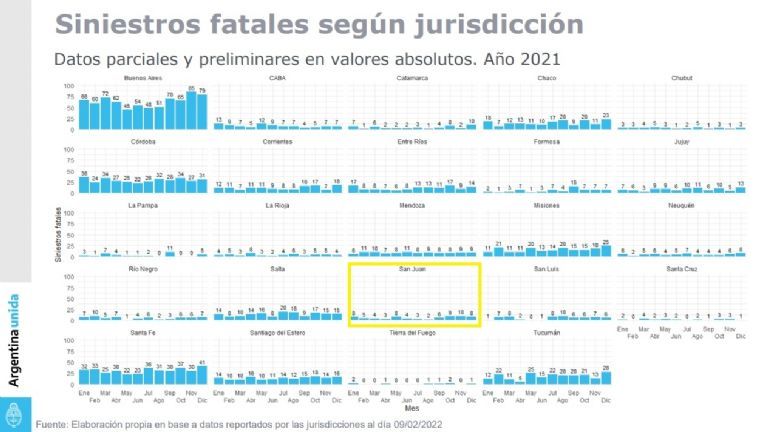 Respecto de la tasa siniestralidad y mortalidad cada 100 mil habitantes según cada jurisdicción, San Juan está en un grupo intermedio de provincias. San Juan sumó 70 siniestros viales en un total de 3.454 del país, y en ellos perecieron 80 personas, de un total de 3.866 en toda Argentina.