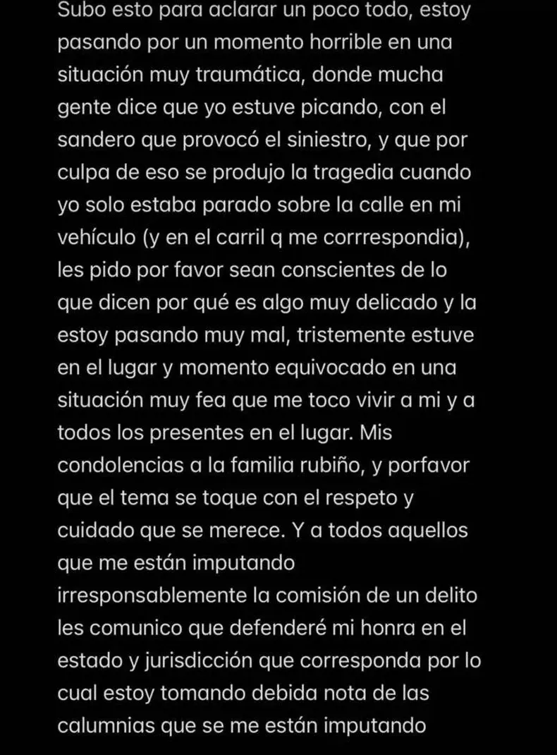 Con un escueto mensaje de la Policía de San Juan dando a conocer el hecho y con la movilización de sus amigos y familiares para que se dé a conocer el hecho, un domingo 15 de octubre en la madrugada fallecía Lucía Rubiño (16) tras ser atropellada por un auto Renault Sandero que también era conducido por un menor, en un siniestro ocurrido en el interior del Barrio Profesionales de Rivadavia.