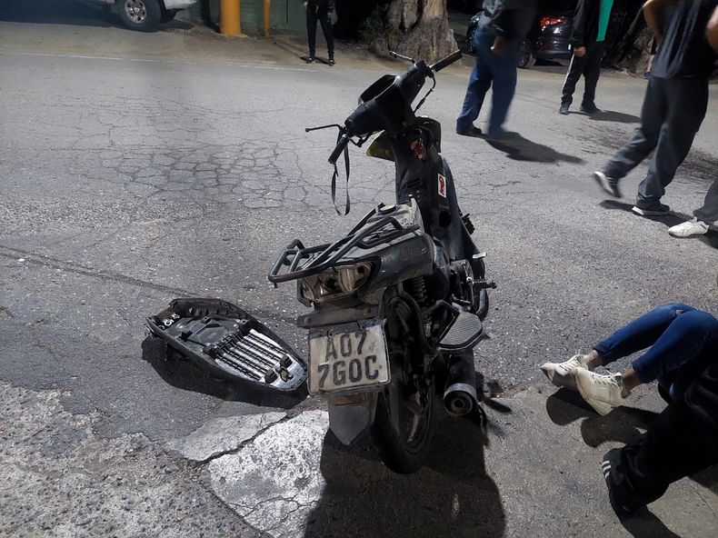 Un accidente de tránsito se registró alrededor de las 20:30 horas de este domingo, en la intersección de calle Pellegrini y Santa María de Oro, en Santa Lucía, dejando a una persona herida. El incidente ocurrió cuando el conductor de un Fiat Argo, de apellido Font, quien circulaba en su vehículo por calle Santa María de Oro en dirección norte-sur, realizó una maniobra de giro a la derecha para ingresar a su domicilio.