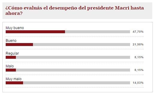 Este fin de semana en un artículo de Clarín se publicó la noticia de que la imagen de Macri está en su punto más alto de la serie histórica que lo mide desde 2008: registra este mes una positiva de 75%, y tan sólo 20% negativa.