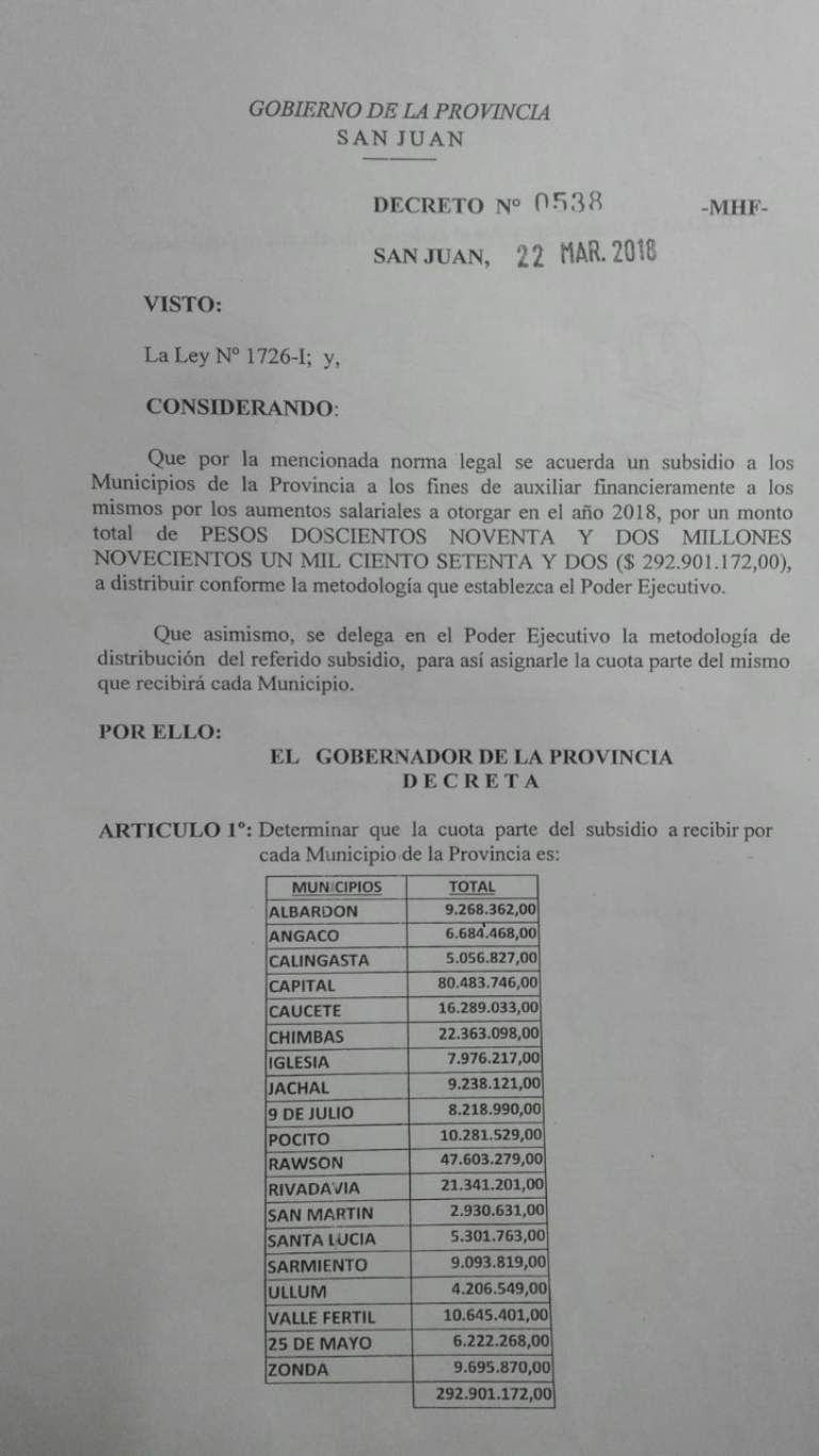La discusión del proyecto de ley de necesidad y urgencia por el cual la Provincia otorga a los municipios un subsidio de $292.901.172 para que hagan frente a los aumentos salariales de los empleados municipales, generó un importante cruce en el inicio de la primera sesión ordinaria, que se retomó hoy tras el mensaje de Sergio Uñac que dio el martes. La oposición a pleno pidió que la iniciativa, que se trató sobre tablas, fuera a comisión para ser estudiada y revisada. Plantearon gran disconformidad por los fondos que recibirán las comunas, aduciendo que no alcanzan y que las comunas se verán “perjudicadas”, pero perdieron la pulseada frente al oficialismo que aprobó el proyecto tal cual había ingresado, por 23 votos a favor y 8 en contra.