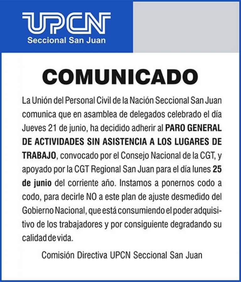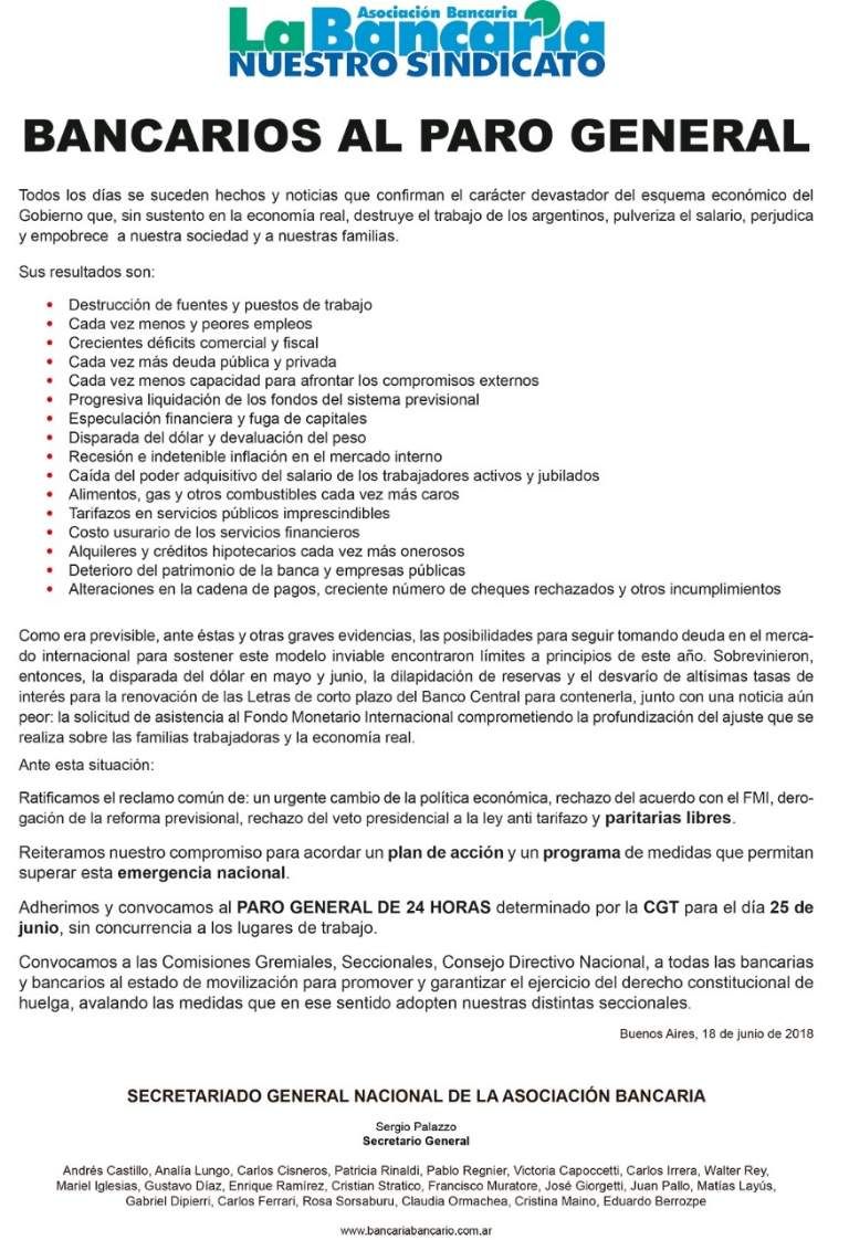 “Va a ser el paro más fuerte de los últimos años”, dijeron desde Buenos Aires los dirigentes de la CGT que convoca al paro general de trabajadores para el próximo lunes 25 de junio.