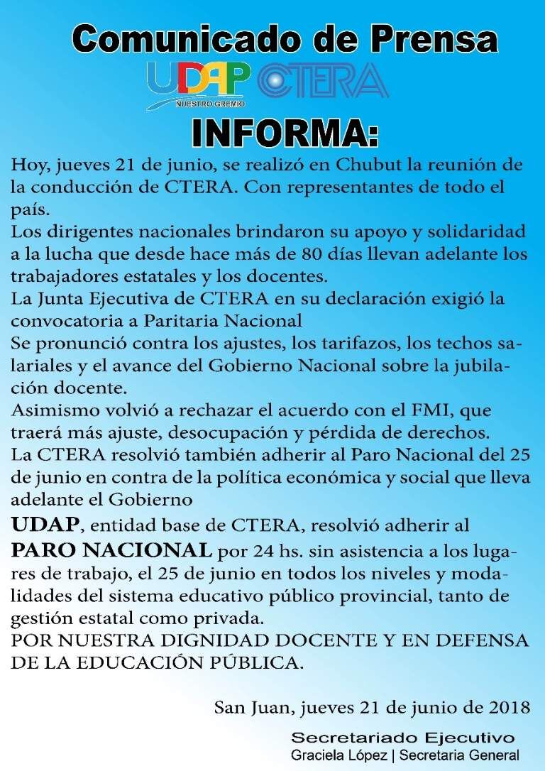 Estos son los comunicados de los gremios locales que adhieren.