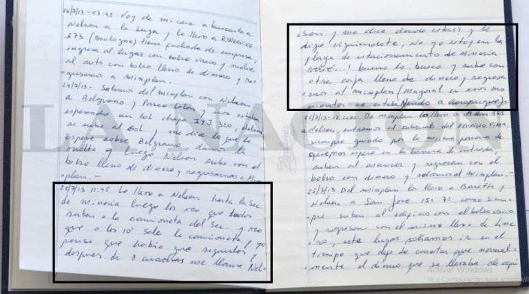 En las fotocopias que circulan por diferentes medios, el ex chofer de Baratta redacta que el 19 de julio del 2013, junto a su jefe, llegan hasta el edificio de la Secretaría de Minería en dónde Baratta se baja y a unos minutos después regresa al coche con una caja de zapatos lleno de dinero.