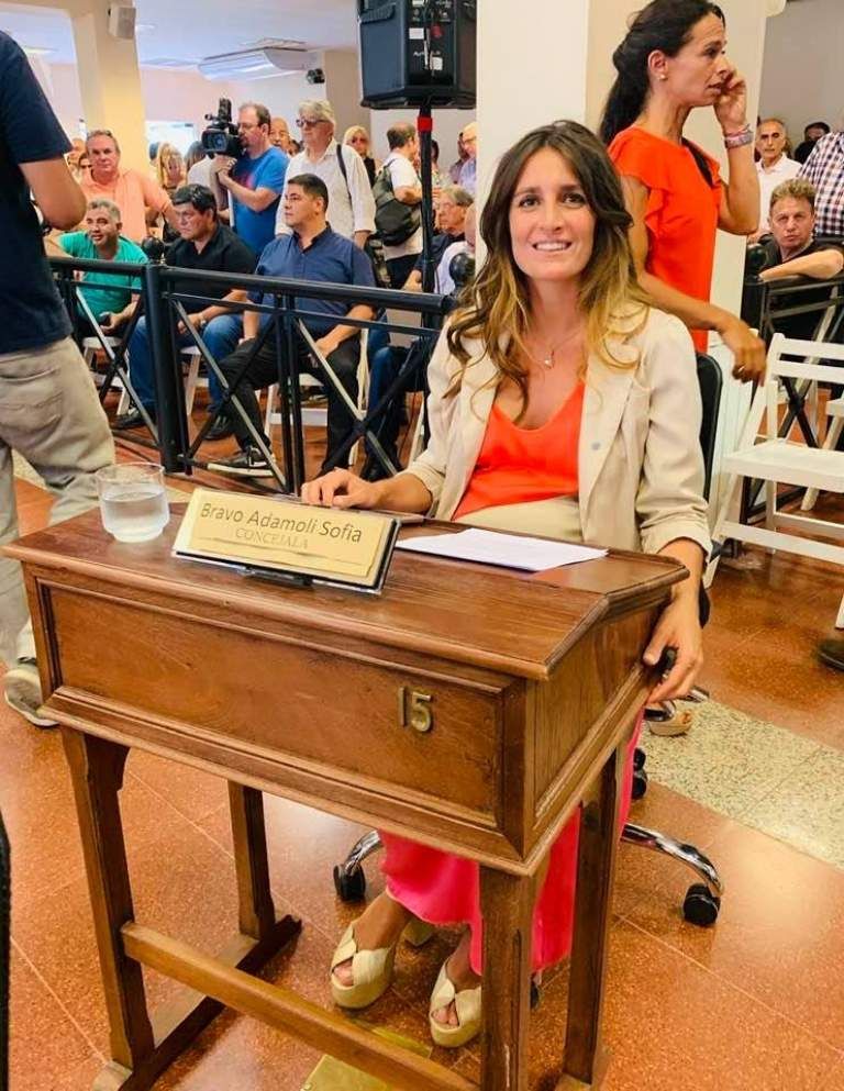 A pocos días de ser mamá por primera vez, la sanjuanina Sofía Bravo juró como concejal de Tigre. Vestida con vestido lánguido de color naranja, asumió en su banca por el distrito bonaerense donde su marido, el ex galán de novelas Segundo Cernadas y ex edil se postuló para intendente. Él no llegó pero ella sí ganó en las últimas elecciones de octubre.