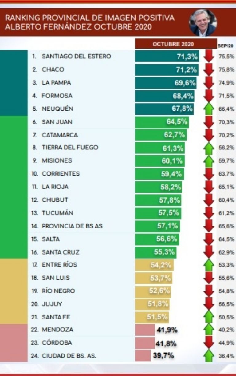 Por otro lado, San Juan sigue estando entre las provincias que más adhieren al gobierno de Alberto Fernández, ubicándose a nivel nacional en el 6º lugar.