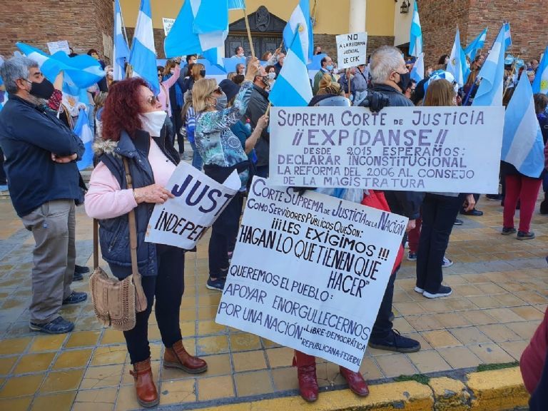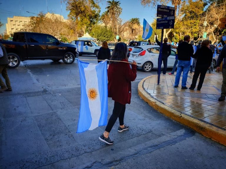 Al igual que en muchas ciudades de todo el país, en la provincia algunos decidieron responder a la convocatoria de la oposición y marcharon contra las medidas del Gobierno de Alberto Fernández en el marco de la gestión de la pandemia de coronavirus.