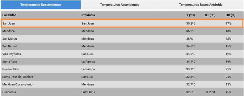 San Juan está viviendo una Navidad llena de afectos y de mucho calor. Según el parte de las 16:00 del Servicio Meteorológico Nacional, la capital sanjuanina se ubica como la más caliente del país con 35,2° y 17% de humedad.