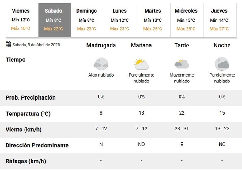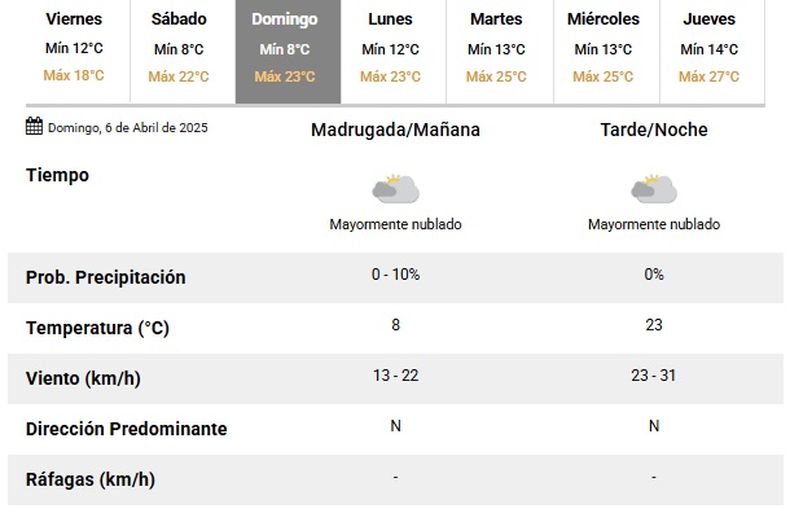 El Servicio Meteorológico Nacional compartió su pronóstico para el fin de semana en la Ciudad de San Juan y alrededores en los que indica que la nubosidad será la gran protagonista tanto el sábado como el domingo, solo advierte sobre la probabilidad de lluvia de esta un 10% para la mañana del