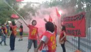 Una veintena de integrantes de la agrupación política Federación Juvenil Comunista, filial San Juan, homenajearon con un banderazo a Fidel Castro.