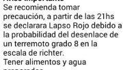 Apenas unos minutos después del sismo, empezó a circular una cadena trucha con el logo del INPRES que advertía la llegada de un terremoto de más de 8º. Muchos entraron en pánico e inmediatamente siguieron replicando el comunicado que se trasformó en viral. Algunos decidieron llamar al INPRES para constatar la veracidad del comunicado que aparentaba ser oficial. Desmentidas tras desmentidas no fueron suficientes. Algunas personas siguieron esperando aterradas un temblor fortísimo, que nunca ocurrió.