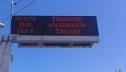 Ubicado a la entrada de la ciudad de San Juan, un cartel led de la municipalidad de la Capital informa fecha, hora y temperatura. Una usuaria de Facebook posteó una foto apenas pasadas las tres de la tarde de hoy y no genera menos que asombro y desconcierto. Será posible?