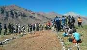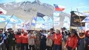 Cerca de las 12 del viernes 12 de febrero llegaron los primeros expedicionarios al límite con Chile. Ahí, en el paso del Valle Hermoso, se veían flamear a lo lejos las banderas de los compatriotas chilenos que esperaban ansiosos la llegada del contingente sanjuanino. Era ese preciso momento el más esperado por el que antes se habían resistido los dolores, las caídas y el frío. Intercambiar la bandera argentina por la de algún expedicionario chileno, fundirse en un abrazo y llorar. Justo en ese lugar que divide Argentina y Chile está el busto en honor a San Martín y a O’Higgins, donde muchos dejan recuerdos que van desde una notita, hasta una estampita o en este caso la figura del Cura Brochero, llevada al lugar por el hijo del gobernador José Luis Gioja.