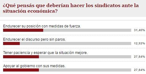 Ante la pregunta "¿qué pensás que deberían hacer los sindicatos antes la situación económica?” los sanjuaninos eligieron entre 4 opciones. La mayoría decantó por las dos más tolerantes, tanto tener paciencia como apoyar al gobierno.