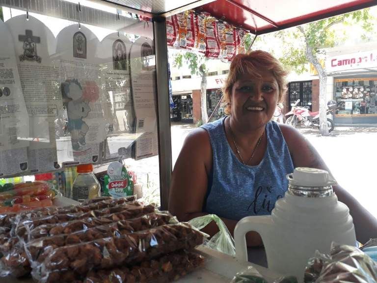 "Lo que importa es estar con la familia, con los hijos, con los nietos. La tristeza hay que dejarla atrás y pedir que la situación mejore. Estamos con el corazón en la boca porque no sabemos qué puede pasar en el país. Cuando era chica las navidades eran especiales, la pasaba con mis abuelos, la Navidad era la de antes. Yo tengo cuatro hijos, no tuve suerte con las parejas y toda la vida trabajé para mantenerlos. Trabajé en el campo, con el ajo y la cebolla, trabajé en hoteles, de empleada doméstica y ahora en este puesto de praliné. Siempre mantuve a mis hijos, me siento orgullosa de quienes son. Tuve un ranchito durante ocho años, se me cayó el techo de mi casa, se me cayó el pozo negro, se me cayó una pared y recién hace cuatro años tengo mi casita. Nunca tuve unas vacaciones, el gran gusto me lo di este año que cumplí 50. Mis hijos me pusieron un pasacalles, me llevaron un desayuno, tuve invitaciones, seguridad en la puerta y no tuve que hacer nada porque la comida era comprada. Fueron los 15 que no tuve".