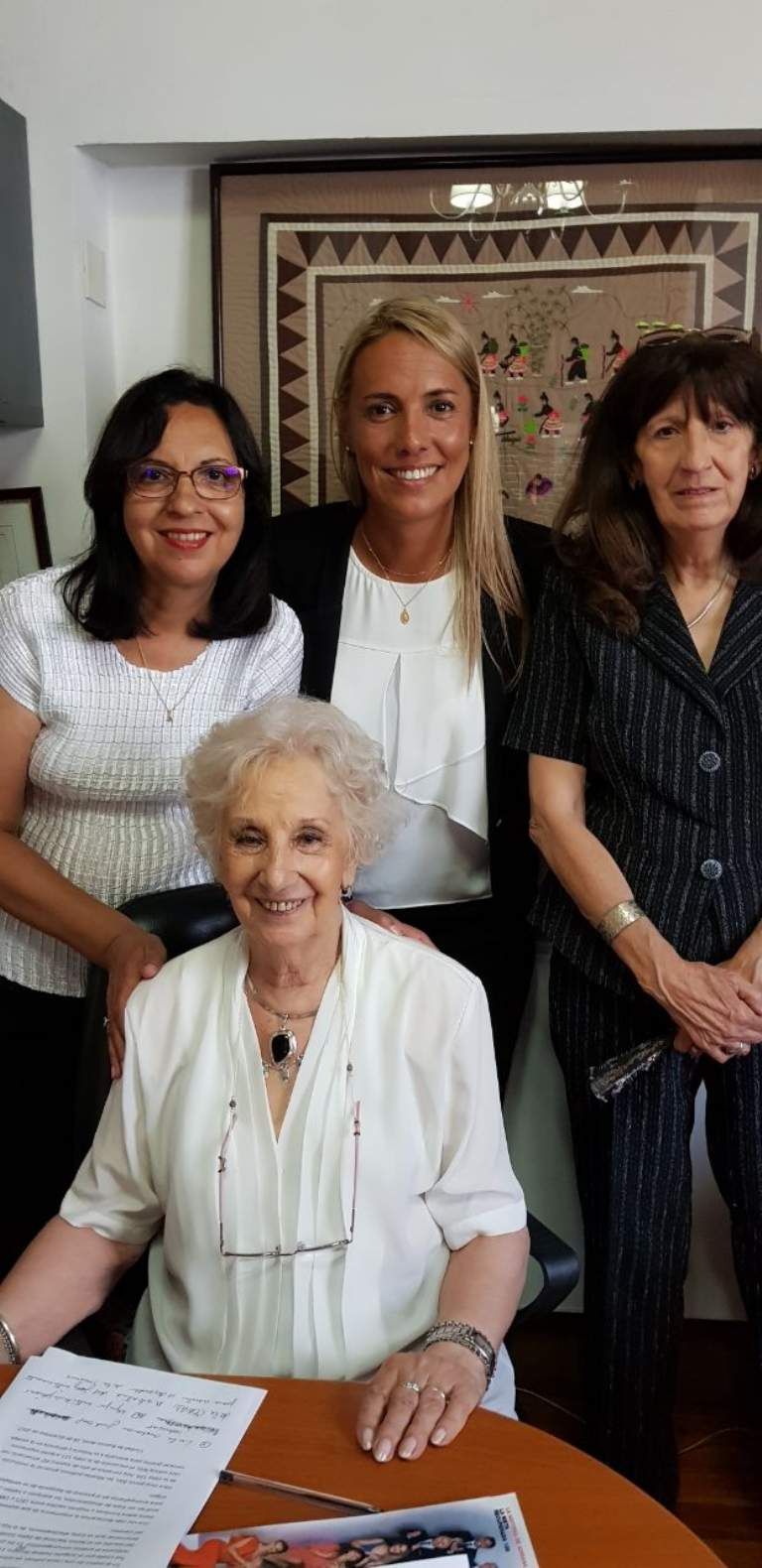Elsa Poblete, Fabiola Aubone -secretaria de Gobierno y Derechos Humanos de San Juan-, Adriana Moyano y Estela de Carlotto