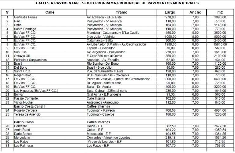 Además, el funcionario de Franco Aranda recalcó que “hay barrios preponderantes, el barrio Carolina 2, el barrio Colón en Desamparados, varias calles que han quedado en el plano anterior que se van a hacer ahora. También toda la zona del barrio Universitario, barrio Bancario y Los Álamos. Y estamos esperando las conexiones domiciliarias de cloacas de la calle Arenales para poder hacer la pavimentación que es una obra que quedó inconclusa, se ha demorado mucho y hemos pedido pavimentarla”.
