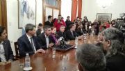 Son 15 veteranos de Guerra, un familiar de un sanjuanino caído en Malvinas, un médico psiquiatra, dos funcionarios de gobierno y un responsable de comunicación quienes irán a las islas. El gobernador Sergio Uñac junto a otros funcionarios le dieron la despedida a los miembros de la delegación, que emprenderán este viaje próximamente.