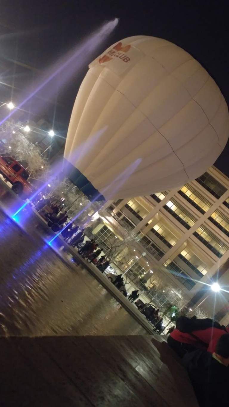 Este viernes por la noche un globo aerostático sorprendió a los sanjuaninos en plena Plaza del Bicentenario.