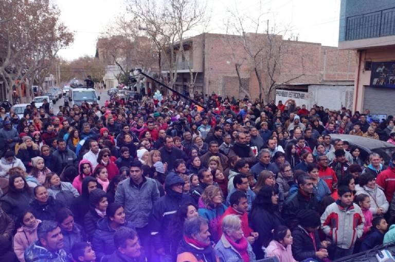 Los sanjuaninos se convocaron en la puerta de Canal 5 Telesol, en calle Santa Fe, casi España, para recibir al equipo del canal.
