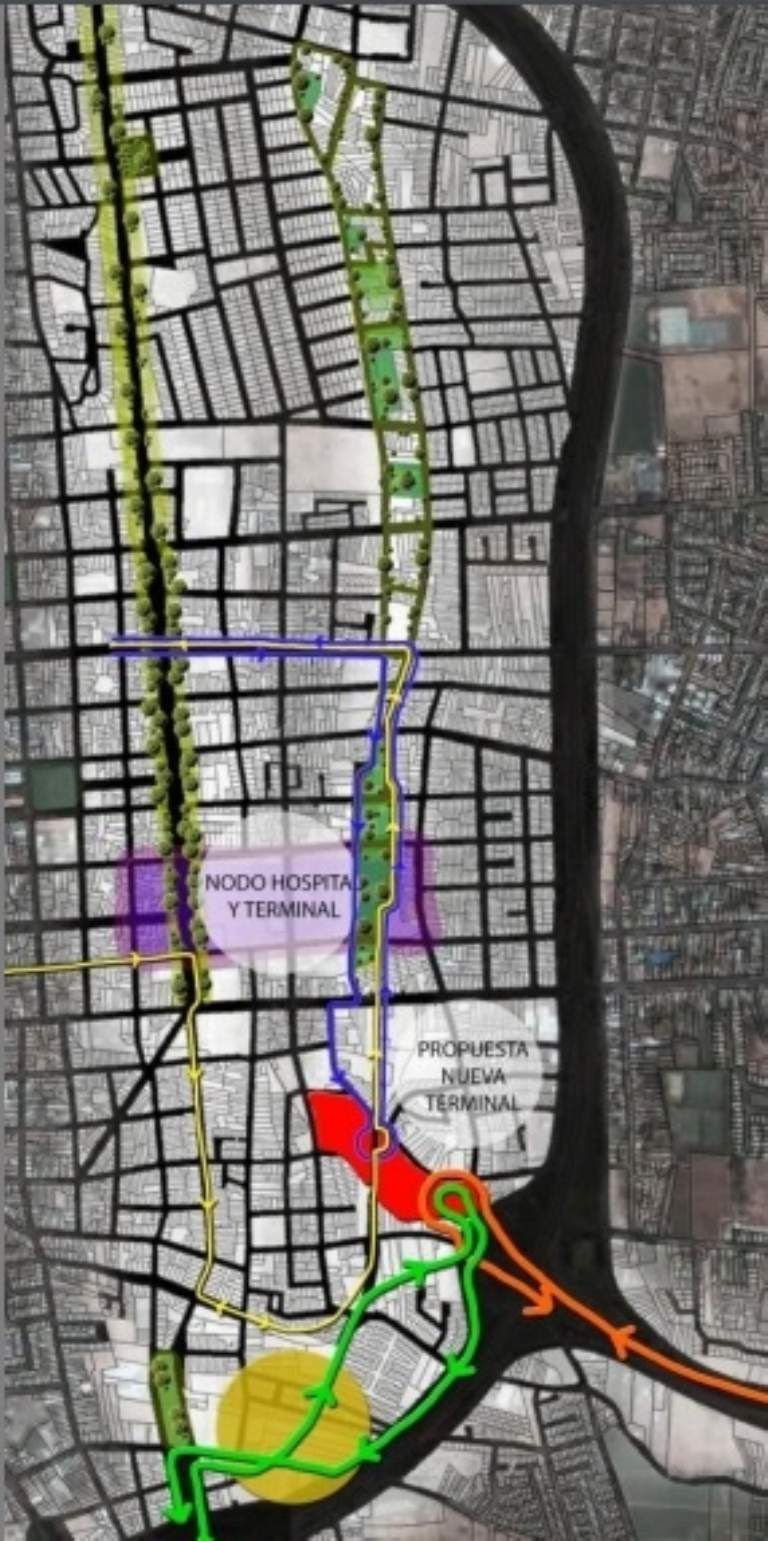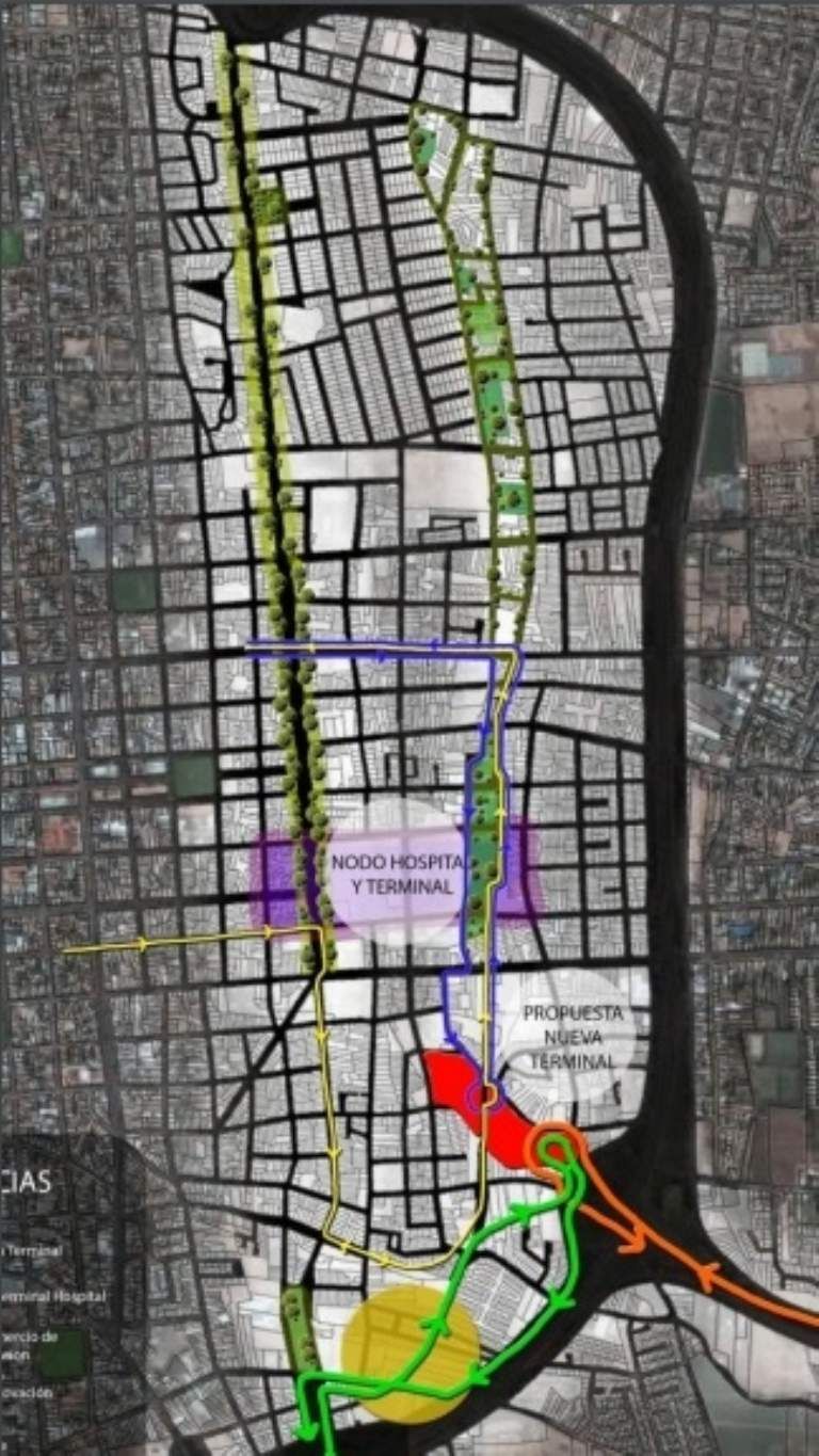 La propuesta oficial incluye: la nueva Terminal de Colectivos intra e interurbanos, un distrito multifuncional Salud-Educación-Recreación en torno al nodo Hospital Rawson /Terminal; la recuperación de la avenida Rawson con usos asociados, la relocalización del comercio de autopartes, la conformación de ejes verdes estructuradores del espacio público Norte Sur, calles Pueyrredón, Avellaneda y ex vías del ferrocarril.