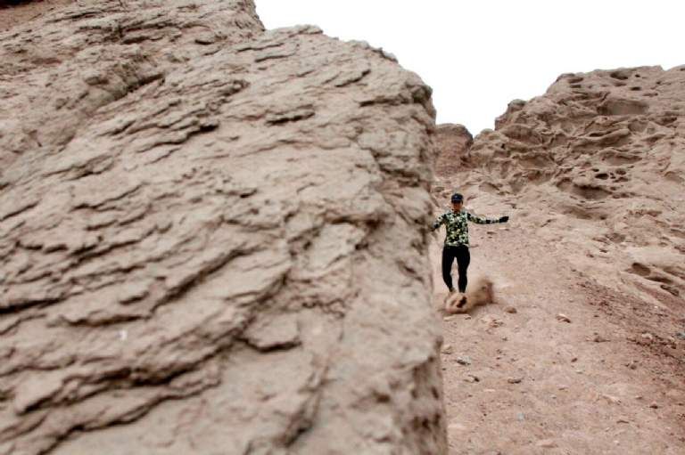 La zondina Adriana Hidalgo, disfrutando en la aridez sanjuanina