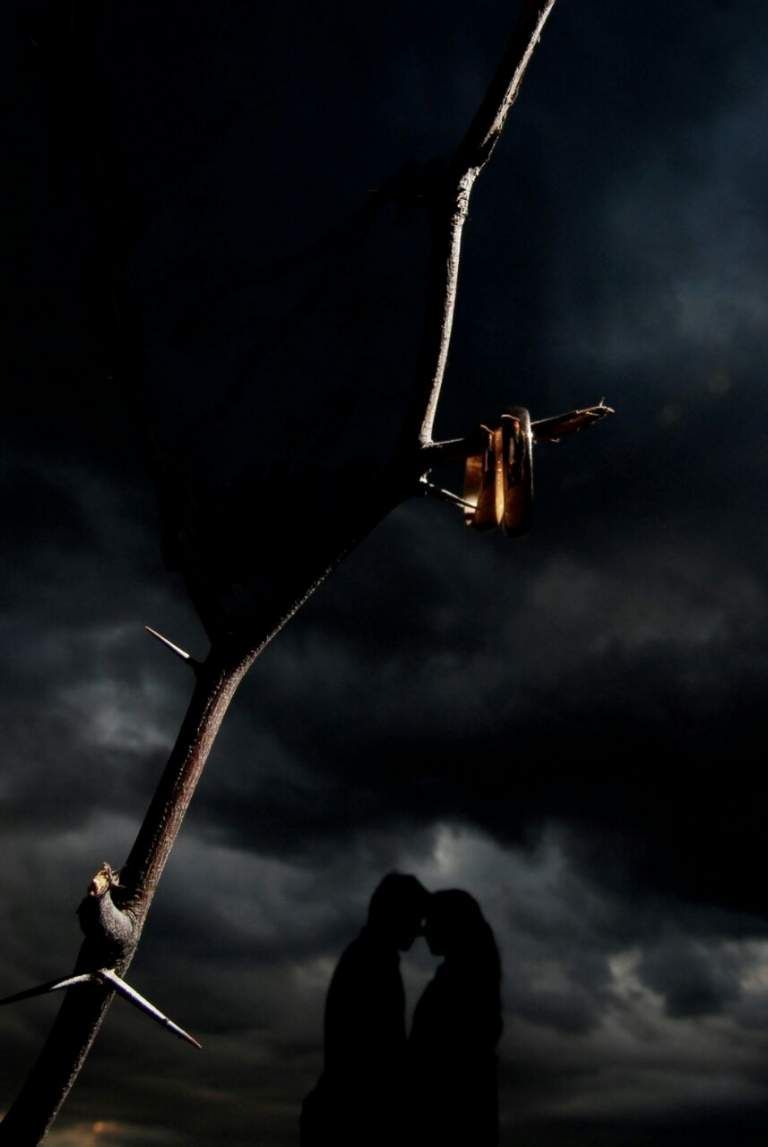En sentimiento de los novios y las quinciañeras jugando con la naturaleza y las luces