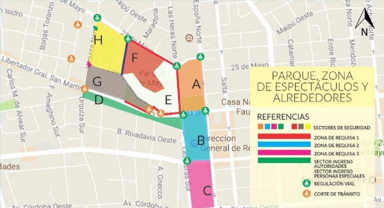 Los festejos en Capital serán en el interior del recinto diagramado en el pulmón verde, al cual se podrá ingresar desde las 8.00 horas del 21 de septiembre. Esto permitirá menos cortes de calle y por calles Libertador y España, por ejemplo, se podrá circular con normalidad. El escenario principal estará ubicado en la zona del Ex Estadio Abierto y su ingreso se abrirá a las 14.00 hs.