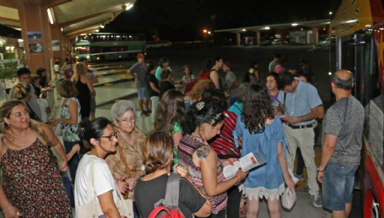 Miércoles por la noche. Terminal de Ómnibus de San Juan. Algunos llegan, otros se van. Algunos lo hacen por placer, otros por cumplir con obligaciones. Muchos llegan sonrientes porque al llegar a destino un ser querido los espera para darles un beso y un abrazo. Otros, en cambio, un poco afligidos porque dejan a los suyos antes de partir. Pero lo que se vivió anoche en la terminal no fueron las típicas bienvenidas y despedidas, las idas y vueltas de siempre. Anoche, en cambio, un grupo de sanjuaninos partieron rumbo a Chile cargados de ilusión, de sueños y de pedidos para hacerle, si es posible en persona, al Papa Francisco.