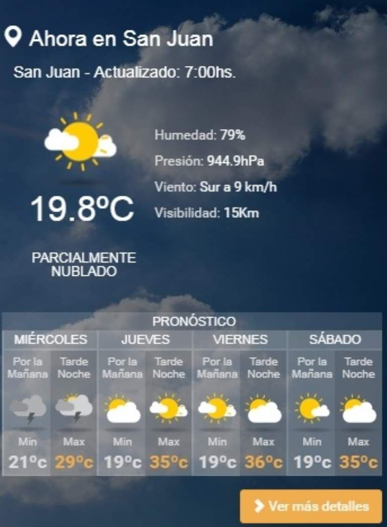 El cielo sanjuanino insiste en las lluvias, tormentas nocturnas. La máxima llegará sólo a los 29º, mientras la mínima fue de 21º.
