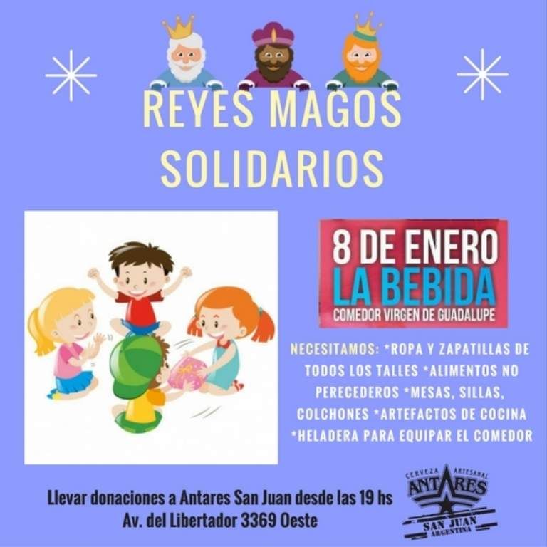 Antares tiene la idea de que no quede ningún chico sin celebrar los Reyes Magos y por eso está organizando una movida para que el sanjuanino que pueda aporte su granito de arena para la felicidad de los pequeños de un comedor Virgen de Guadalupe de La Bebida y la suya personal.