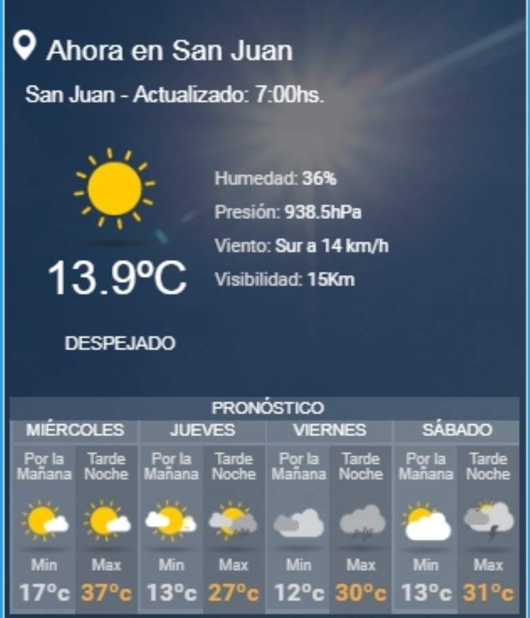 El Servicio Meteorológico Nacional prevé viento Zonda para la tarde de este miércoles. Mirá cómo seguirán los días.