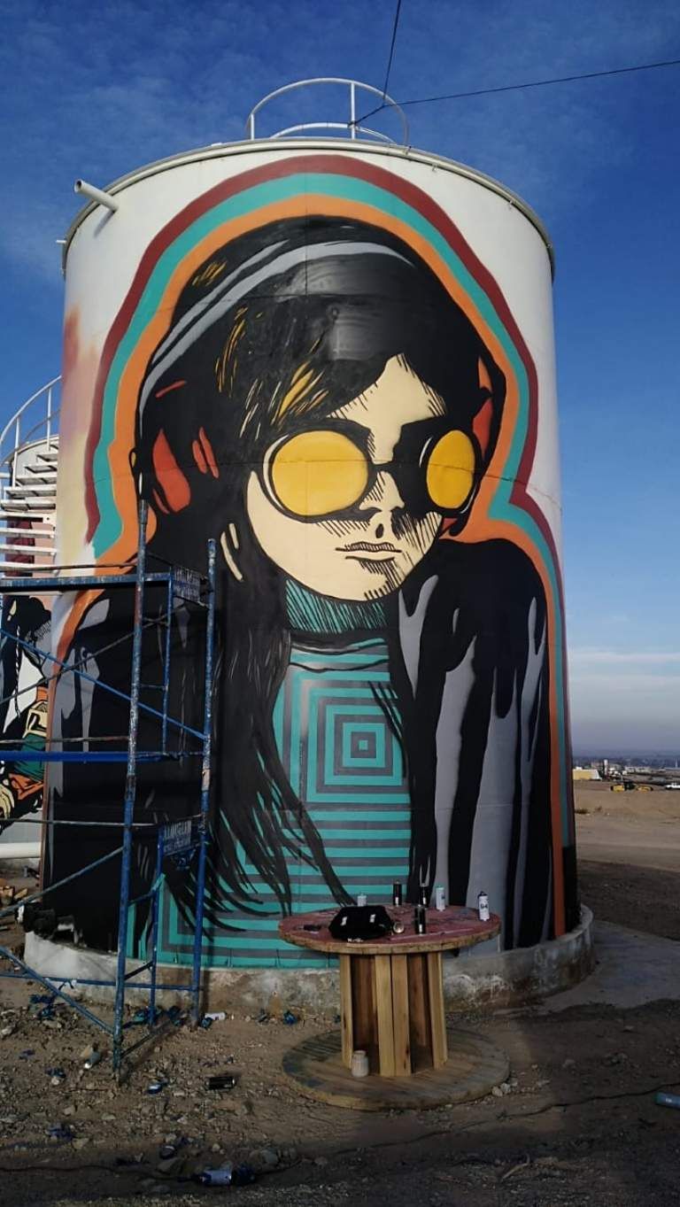 Detrás del Autódromo Villicum, integrándose al paisaje espectacular de la pista, dos tanques enormes de agua alegraban la vista. Los monumentales cilindros estaban pintados casi completos con murales, que fueron hechos por manos sanjuaninos.