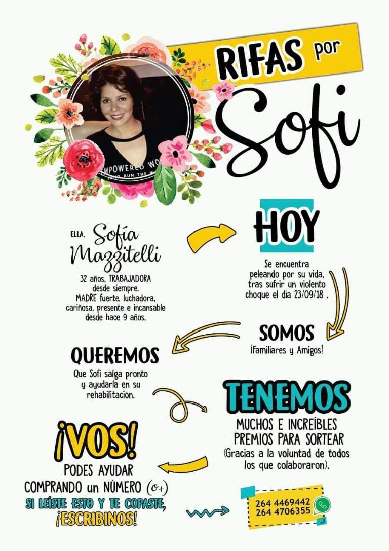 Desde entonces Sofía no despierta porque el accidente le provocó una grave fractura de cráneo. Sus amigos y familiares decidieron lanzar una rifa para colaborar con ella y que pueda ser trasladada a Mendoza donde realizará la rehabilitación para salir del coma.